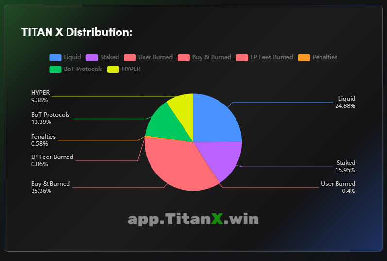 TitanX is a fair launched project built on Ethereum, inspired by Richard Heart’s vision of DeFi. $TITANX fuels an ecosystem of tokens bonded to it, creating a unique opportunity for holders to leverage their Ethereum. The ecosystem follows the principle of “All for one, one for all” – as more projects are built on top of it, TitanX and its ecosystem gain in $value thanks to its unique bonded liquidity pair system. The project aims to transition from hyperinflationary to hyperdeflationary. With a significant reserve for Buy and Burn in Eth (over $22M), no more token emissions after October, and a growing number of builders and holders, TitanX is poised to become a scarcer asset. This community-owned, community-built project offers an opportunity to be part of a one-of-a-kind DeFi ecosystem supported by mathematical principles, innovative concepts, and a strong community.
