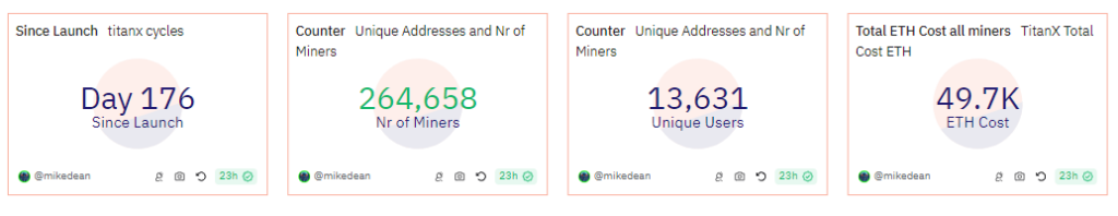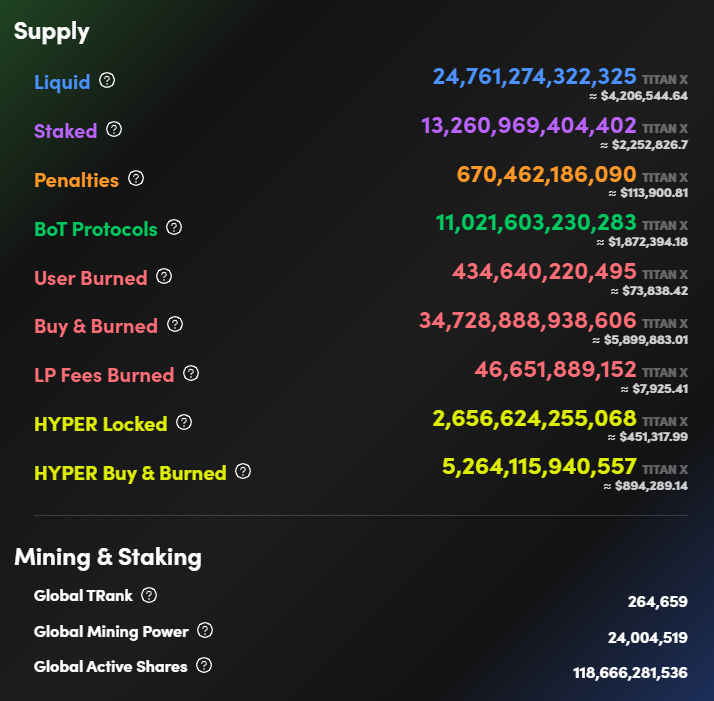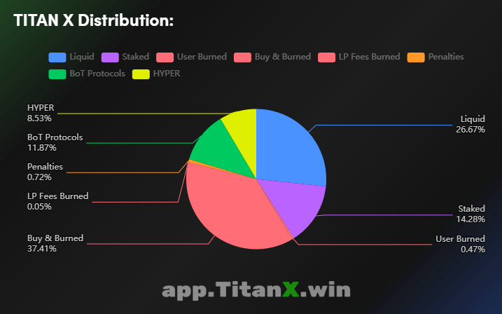 TitanX is a fair launched project built on Ethereum, inspired by Richard Heart’s vision of DeFi. $TITANX fuels an ecosystem of tokens bonded to it, creating a unique opportunity for holders to leverage their Ethereum. The ecosystem follows the principle of “All for one, one for all” – as more projects are built on top of it, TitanX and its ecosystem gain in $value thanks to its unique bonded liquidity pair system. The project aims to transition from hyperinflationary to hyperdeflationary. With a significant reserve for Buy and Burn in Eth (over $22M), no more token emissions after October, and a growing number of builders and holders, TitanX is poised to become a scarcer asset. This community-owned, community-built project offers an opportunity to be part of a one-of-a-kind DeFi ecosystem supported by mathematical principles, innovative concepts, and a strong community.