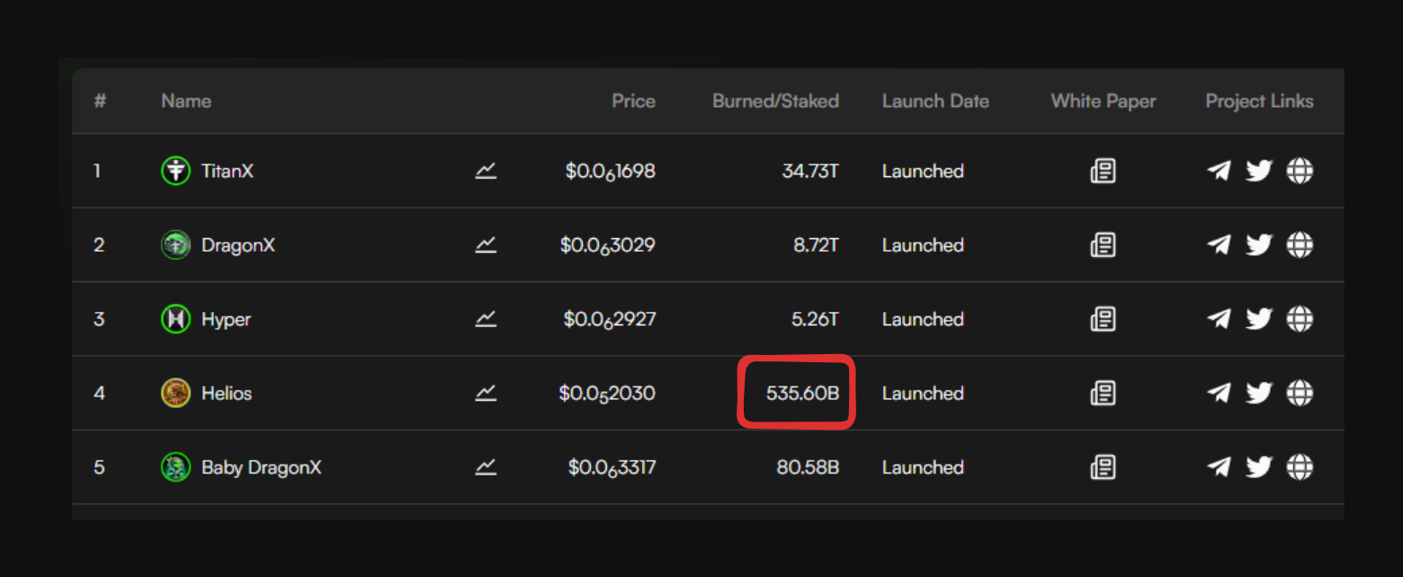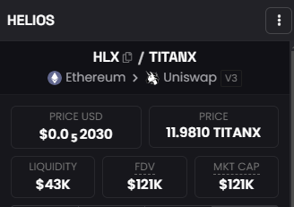 Current Price on Helios (HLX) 0.0(5)2030 or 11.9810 to TitanX (launched at 1:1)